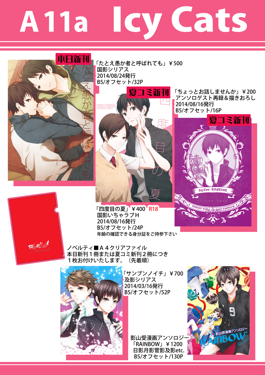 2014/08/31 GOOD COMIC CITY 21 東3ホールヘ38a「Icy Cats」